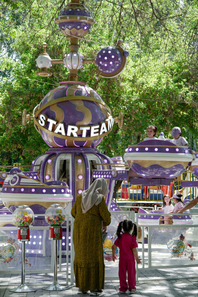 時計を見ると、午後1時を過ぎていた。気分を変えようと、ふと目に入った大衆食堂へ入る。地元の人らでほとんど席が埋まっており、古いクーラーがカタカタと音を立てて生ぬるい風を送っていた。ヒジャブ姿の店員に案内された奥の席に座り、「キルギスに着いたばかりだ」と伝えると、彼女はにっこり笑い、2つの料理を運んできた。
