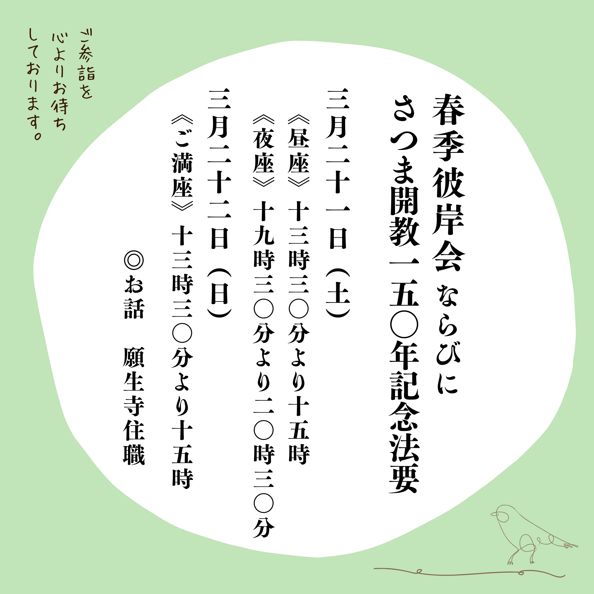 【行事案内】3月21日から22日 春季彼岸会