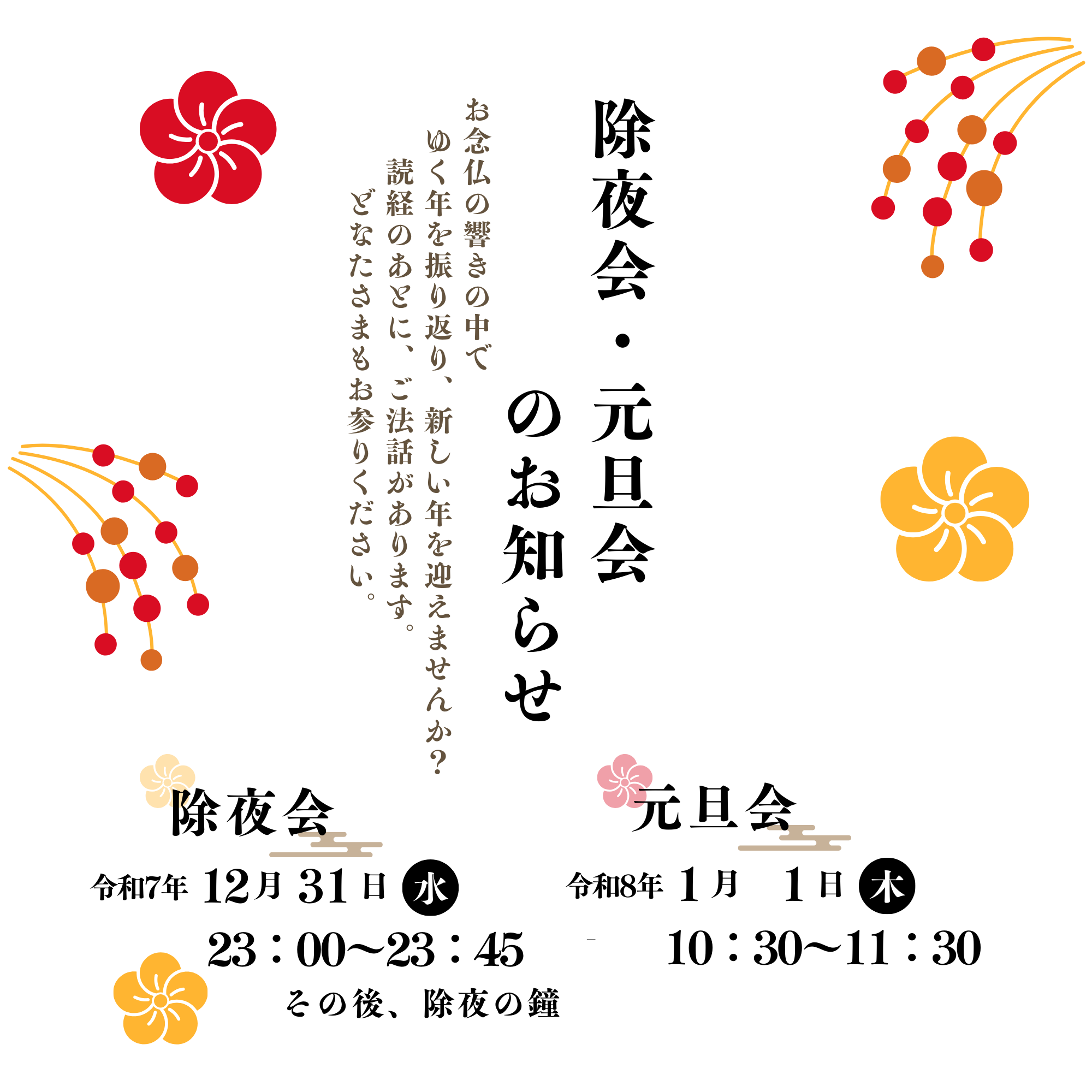 3. 【行事案内】12月31日 除夜会/1月1日 元旦会
