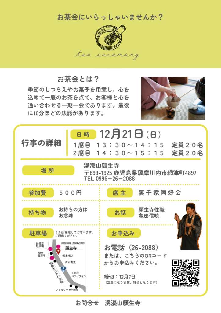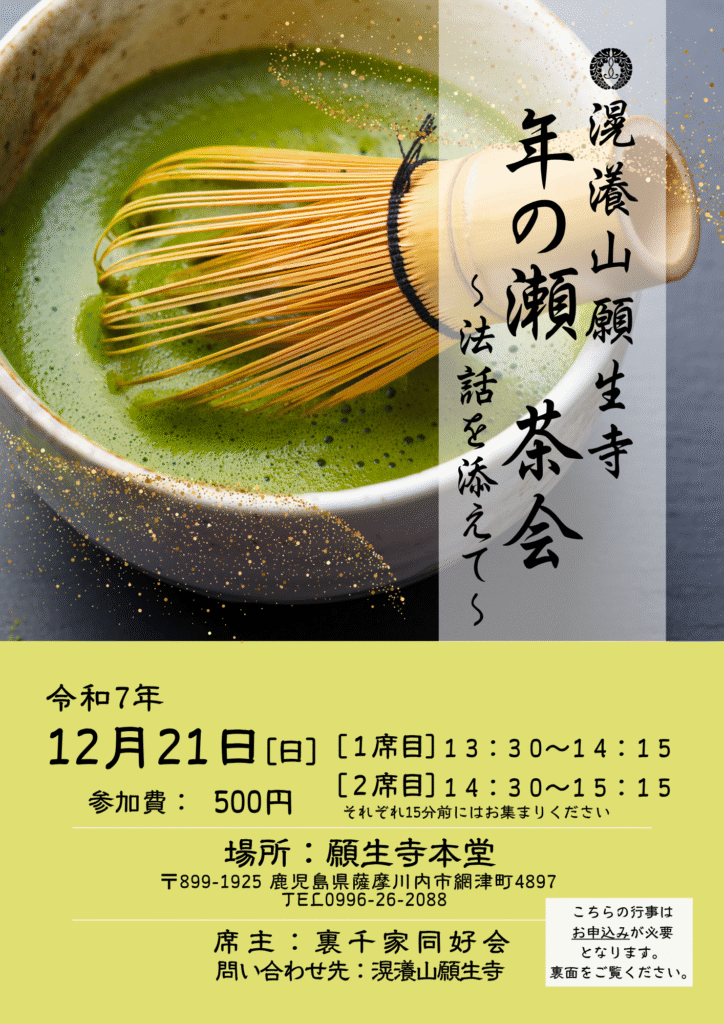 【行事案内】12月21日(日)お昼 「年の瀬 茶会 〜法話を添えて〜」
