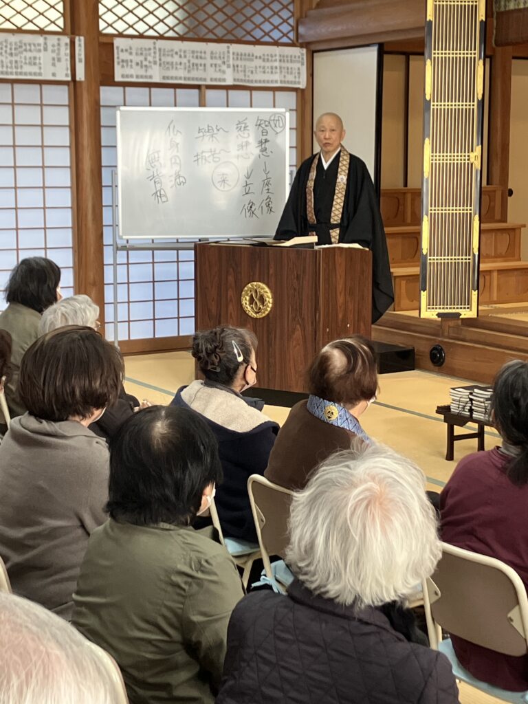 最初のお座では、阿弥陀さまは私たちに対して決して背中を向けることなく、常にご一緒してくださっている。そのことが、どれほどありがたいことかをお話しくださいました。